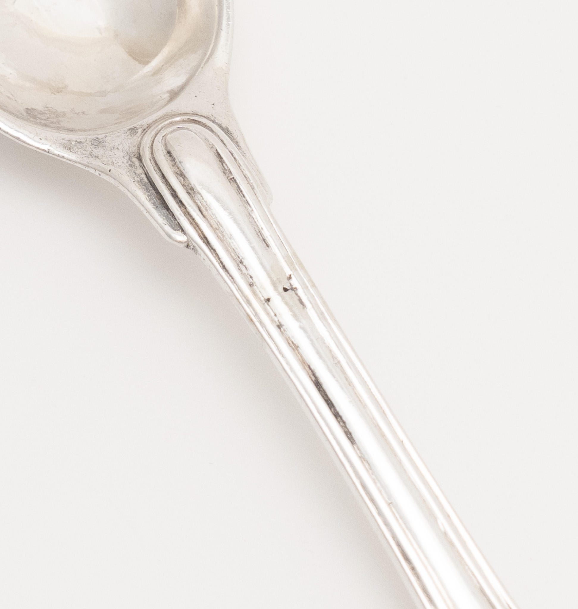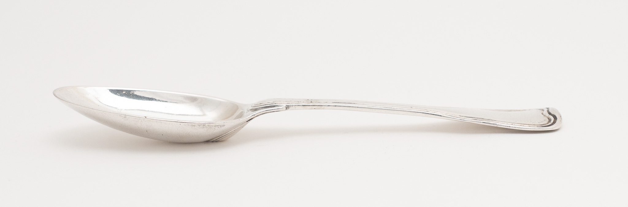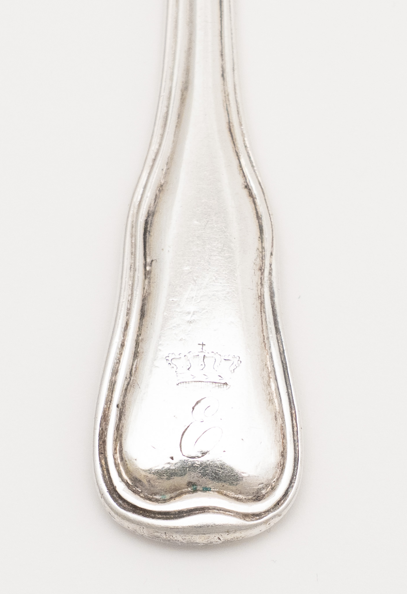 Anmerkung: Der Löffel stammt ursprünglich aus einem Service für Carl Christian Erdmann (1716–1792), Herzog zu Württemberg-Oels. Eugen von Württemberg vermerkte später, dass er dieses Service erbte und Teile davon mit seinem eigenen Monogramm versehen ließ.