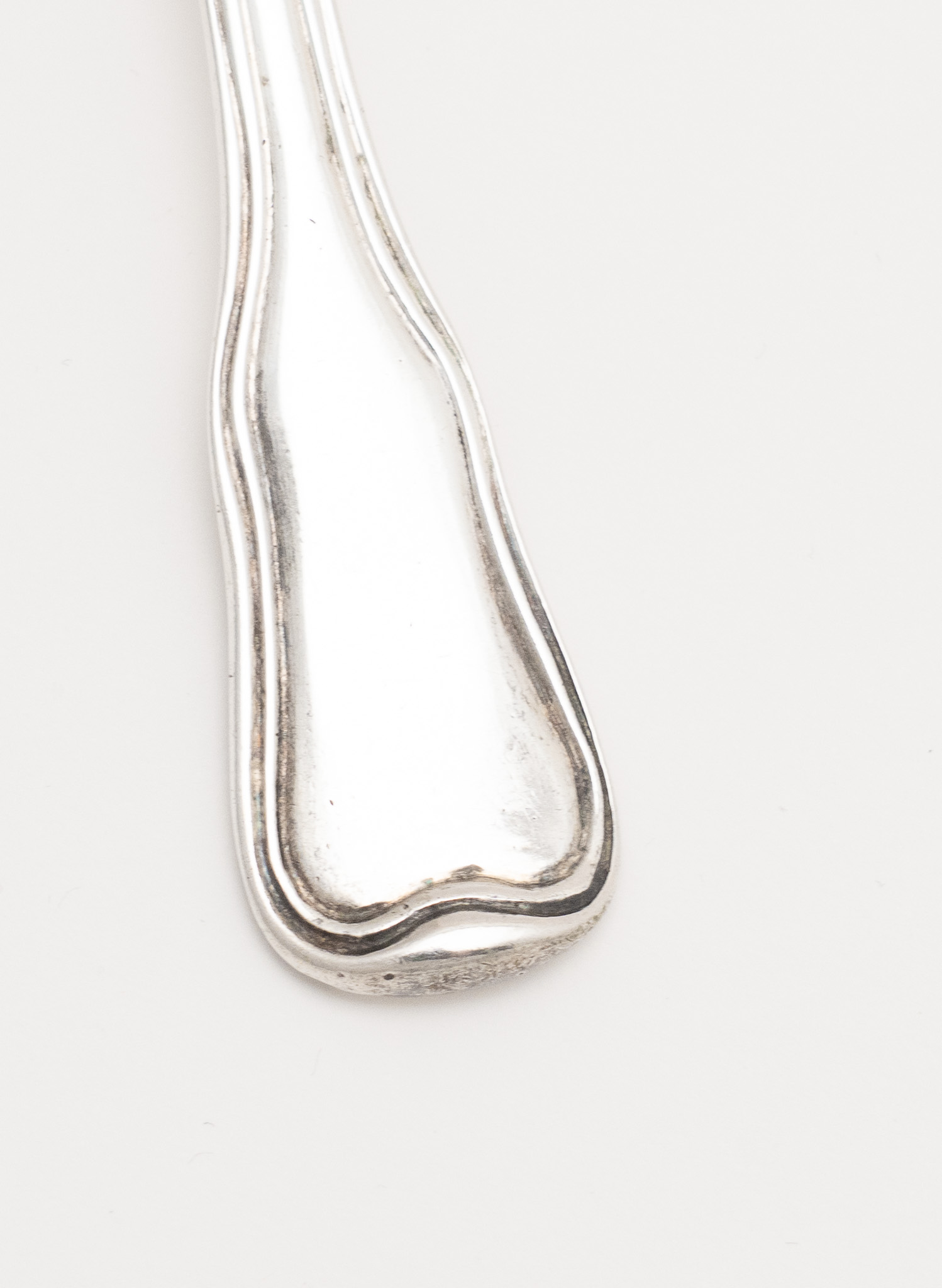 Der Löffelstiel in Geigenform mit Fadendekor entspricht der Stilform des Barock; typisch ist die langgezogene Laffe.