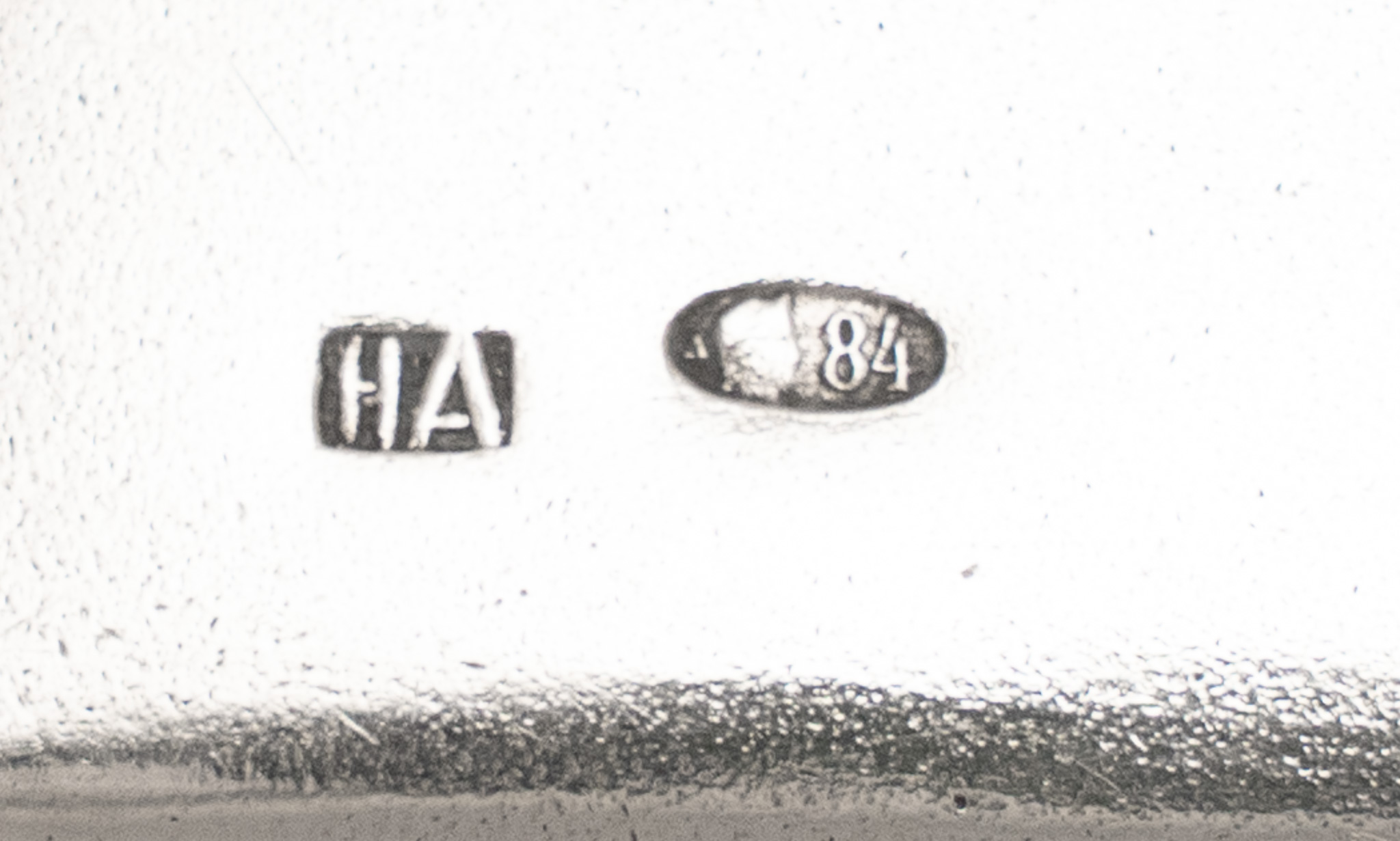 Punzierung: Kokoschnik-Marke mit Delta-Zeichen Moskau 1908 bis 1917, Meistermarke nicht identifiziert.