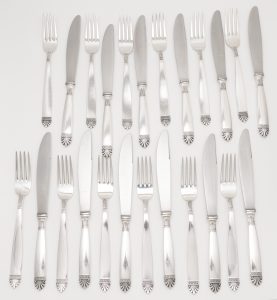 Neu gelistete Objekte sowie Neuigkeiten in unserem Onlineshop Für mehr Informationen zu den Objekten auf das Bild klicken Ein elegantes 24-teiliges Italienisches Vorspeisebesteck in 800er Silber für 6 Personen im Art Deco Stil - Italien modern Eine 1 Dukat Goldmünze in 986'er Gold - Österreich - Nachprägung "1915" Eine elegante Moskauer Theater- oder Abendtasche in 84er Silber 1908/17 - RESERVIERT Eine Moskauer Teekanne - Pavel Sazikov Moskau 1853 Ein solides ovales George III. Silbertablett - Benjamin Smith II. & III. London 1816 - RESERVIERT Eine solide Brosche in 18 Karat Gelbgold mit 40 Diamanten von zus. ca. 1 ct. Ein großes Collier mit „Ochsenfurter Kreuz“ gearbeitet in 14 Kt. Gelbgold - Deutschland 19. Jahrhundert Ein feiner Art-déco Ring in 14 Karat Gelbgold und Platin mit einem Smaragd von 1,2 ct. und 16 Diamanten - RESERVIERT Ein Ring in 18 Karat Weißgold mit fünf Saphiren und kleinen Diamanten Ein Paar Ohrstecker in Weißgold mit Saphiren und Diamanten Ein Navette-Ring gearbeitet in 14 Karat Gelbgold mit 22 Diamanten und einem roten Saphir Ein eleganter Crossover-Ring in 18 Karat Gelbgold mit 2 Perlen und Diamanten Ein Paar elegante Tricolor Kreolen in 18 Karat Gelb-, Rosé- und Weißgold - Italien modern Ein schweres Panzerarmband in 18 Karat Weißgold - modern Ein Anhänger in 14 Karat Gelbgold mit einem Citrin von ca. 25 ct. - modern Ein Satz von 9 Messerbänkchen - gearbeitet in 800er Silber - Deutschland um 1900