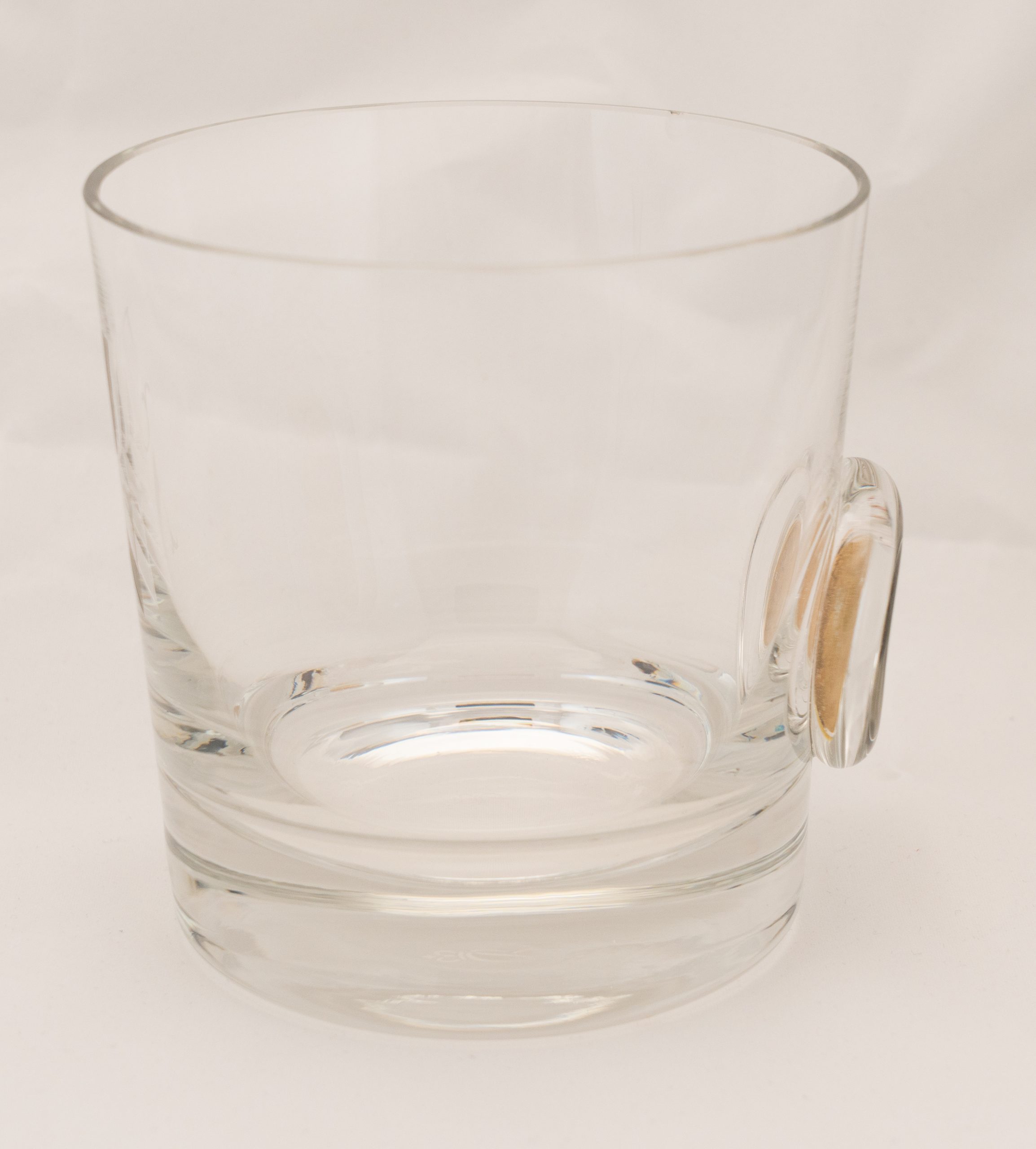 Ein Whiskeyglas aus dem ehemaligen Besitz von Josef Neckermann mit einer Goldmünze